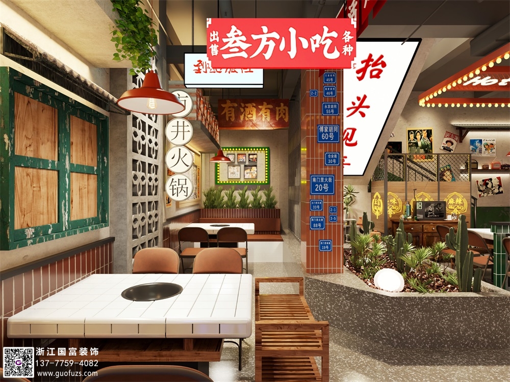 市井老火鍋店裝修設計案例效果圖