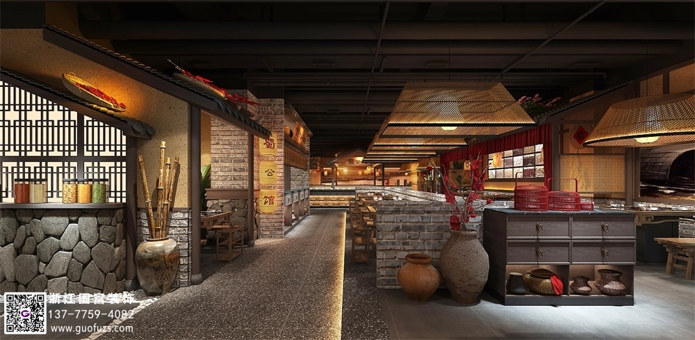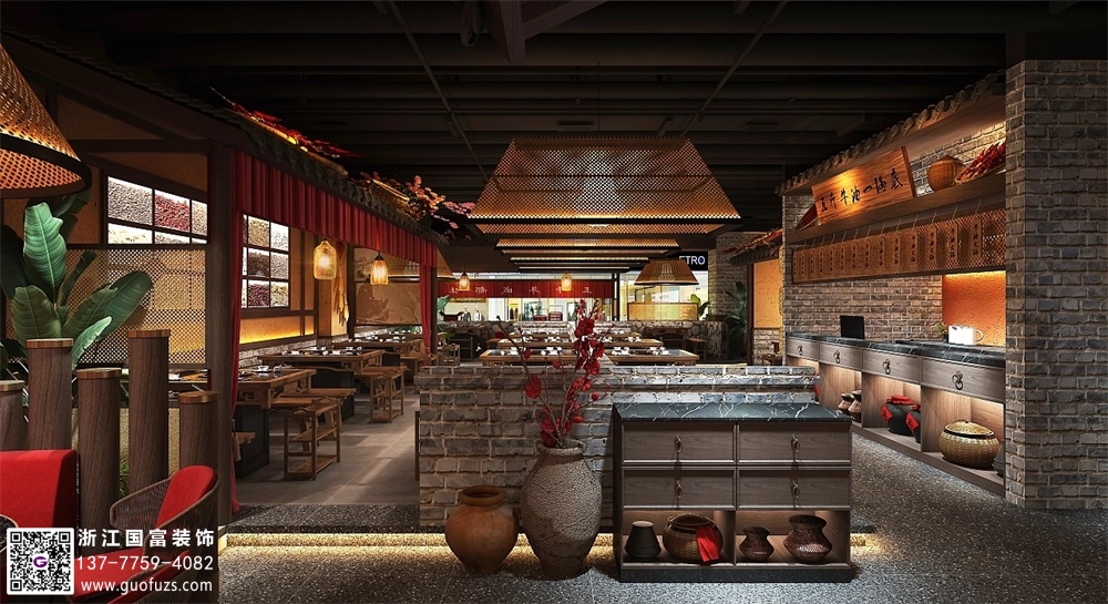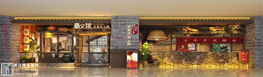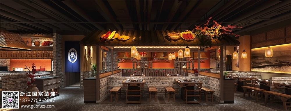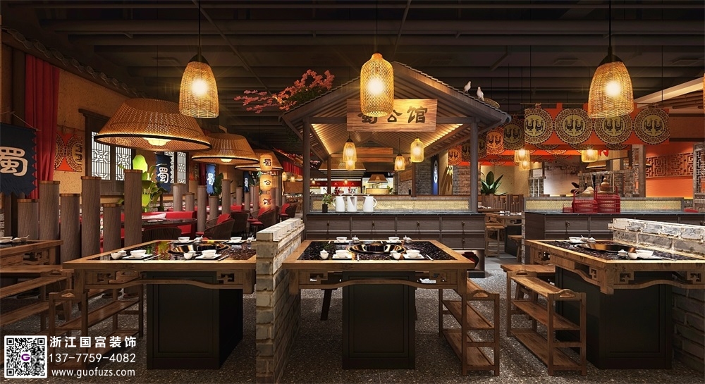 川式老火鍋店裝修設(shè)計案例效果圖