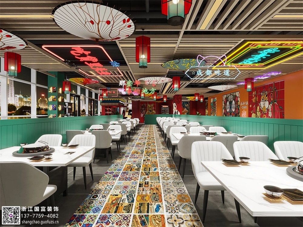 金華國潮風格火鍋店裝修設計案例效果圖