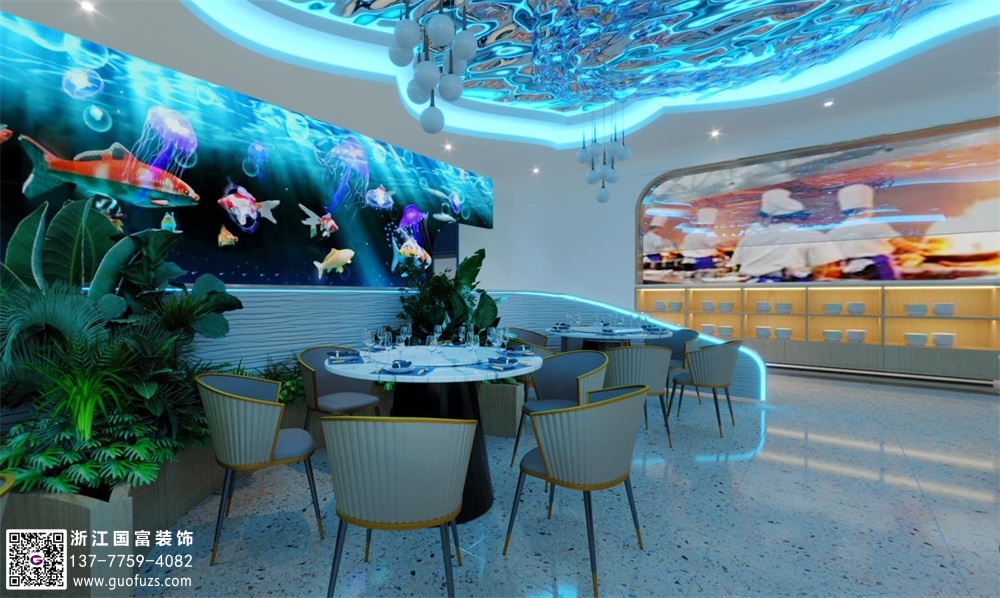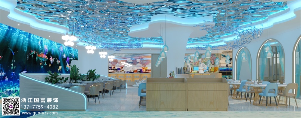 海洋主題自助餐廳裝修設(shè)計(jì)案例效果圖